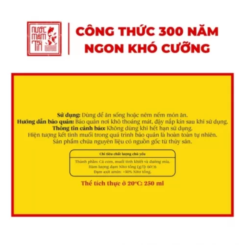 • Nước mắm chuẩn truyền thống nên khi để lâu nước mắm sẽ sậm màu và có thể có kết tinh muối dưới đáy chai, không ảnh hưởng đến an toàn vệ sinh thực phẩm.